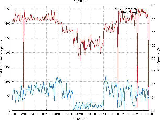 - Max Wind Speed: 13.5 ms-1 Time: 16:21:30 GMT