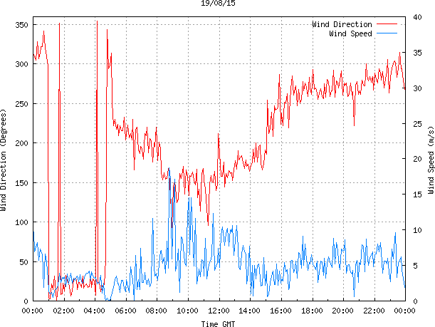 - Max Wind Speed: 18.7 ms-1 Time: 8:46:30 GMT