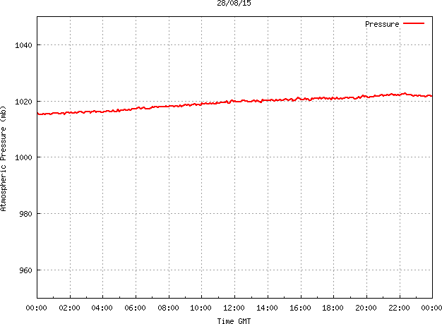 The PML meteorological station, situated on the south-west corner of the building roof, consists of a Hygroclip S3 temperature and humidity sensor housed in a radiation shield, a Mierij Meteo solid state wind sensor (MMW-005), a Chelsea instruments half-hemisphere PAR sensor, a Li-Cor pyranometer (LI-200SZ) and an Omni Instruments 6" tipping bucket raingauge (RG200). The data are logged every 5 minutes using a Pace Scientific XR5 data logger. The real-time rainfall data is likely in error - the correct values will be displayed after a time lag of approximately 24 hours. The meteorological station is sheltered from winds in the north-east and underestimates winds from this quarter. To use these data please contact Dr Tim Smyth.