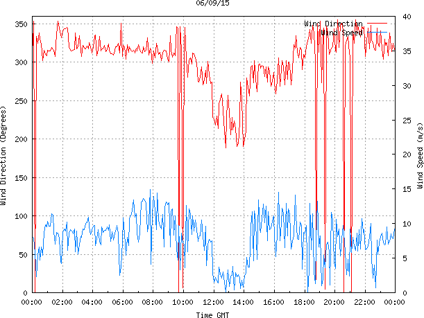 - Max Wind Speed: 14.9 ms-1 Time: 7:46:30 GMT