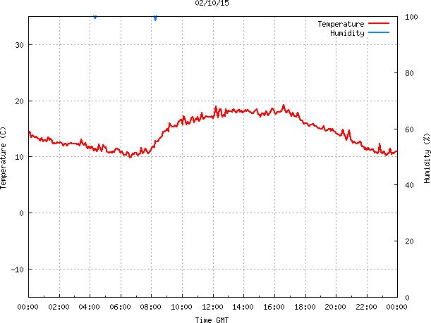 - Max Temp: 19.2 °C Time: 16:36:30 GMT