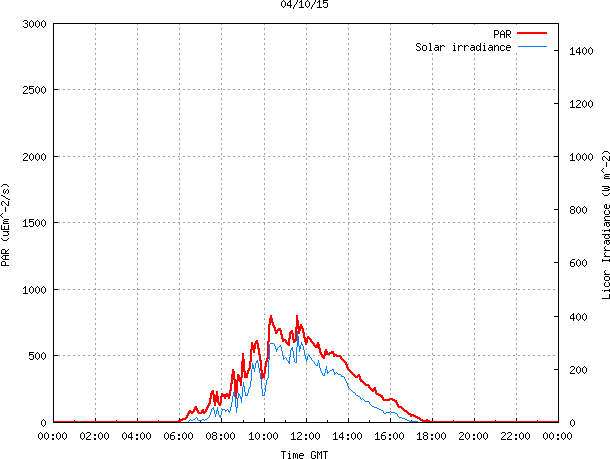 The PML meteorological station, situated on the south-west corner of the building roof, consists of a Hygroclip S3 temperature and humidity sensor housed in a radiation shield, a Mierij Meteo solid state wind sensor (MMW-005), a Chelsea instruments half-hemisphere PAR sensor, a Li-Cor pyranometer (LI-200SZ) and an Omni Instruments 6" tipping bucket raingauge (RG200). The data are logged every 5 minutes using a Pace Scientific XR5 data logger. The real-time rainfall data is likely in error - the correct values will be displayed after a time lag of approximately 24 hours. The meteorological station is sheltered from winds in the north-east and underestimates winds from this quarter. To use these data please contact Dr Tim Smyth.