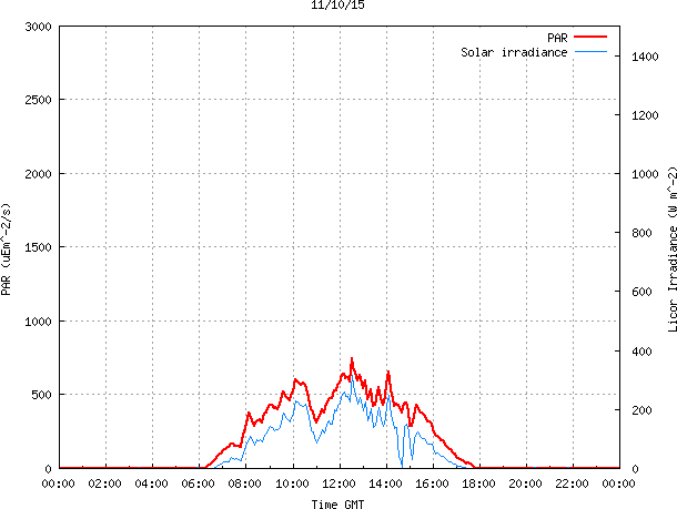 The PML meteorological station, situated on the south-west corner of the building roof, consists of a Hygroclip S3 temperature and humidity sensor housed in a radiation shield, a Mierij Meteo solid state wind sensor (MMW-005), a Chelsea instruments half-hemisphere PAR sensor, a Li-Cor pyranometer (LI-200SZ) and an Omni Instruments 6" tipping bucket raingauge (RG200). The data are logged every 5 minutes using a Pace Scientific XR5 data logger. The real-time rainfall data is likely in error - the correct values will be displayed after a time lag of approximately 24 hours. The meteorological station is sheltered from winds in the north-east and underestimates winds from this quarter. To use these data please contact Dr Tim Smyth.