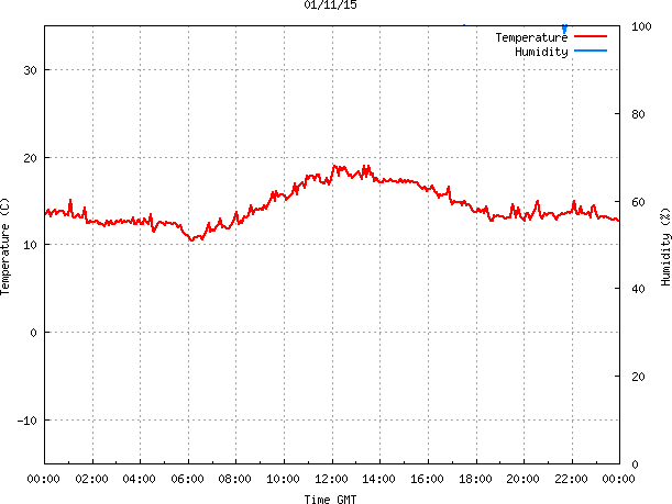 - Max Temp: 19.0 °C Time: 12:06:30 GMT