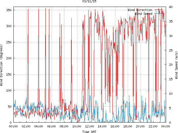 - Max Wind Speed: 9.4 ms-1 Time: 12:01:30 GMT