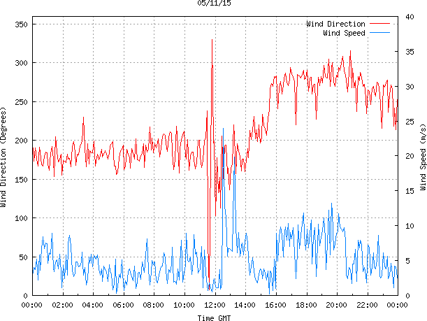 - Max Wind Speed: 24.0 ms-1 Time: 12:31:30 GMT