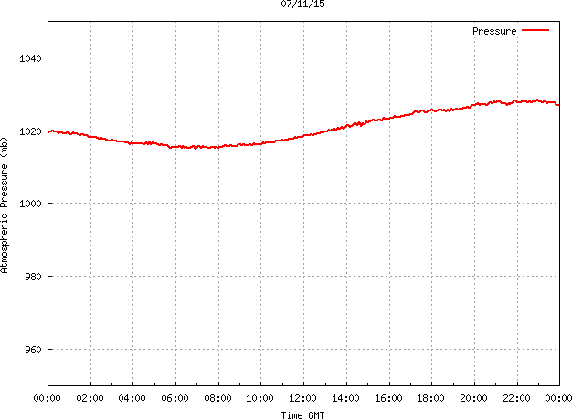 The PML meteorological station, situated on the south-west corner of the building roof, consists of a Hygroclip S3 temperature and humidity sensor housed in a radiation shield, a Mierij Meteo solid state wind sensor (MMW-005), a Chelsea instruments half-hemisphere PAR sensor, a Li-Cor pyranometer (LI-200SZ) and an Omni Instruments 6" tipping bucket raingauge (RG200). The data are logged every 5 minutes using a Pace Scientific XR5 data logger. The real-time rainfall data is likely in error - the correct values will be displayed after a time lag of approximately 24 hours. The meteorological station is sheltered from winds in the north-east and underestimates winds from this quarter. To use these data please contact Dr Tim Smyth.