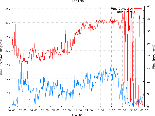 - Max Wind Speed: 19.5 ms-1 Time: 1:41:30 GMT