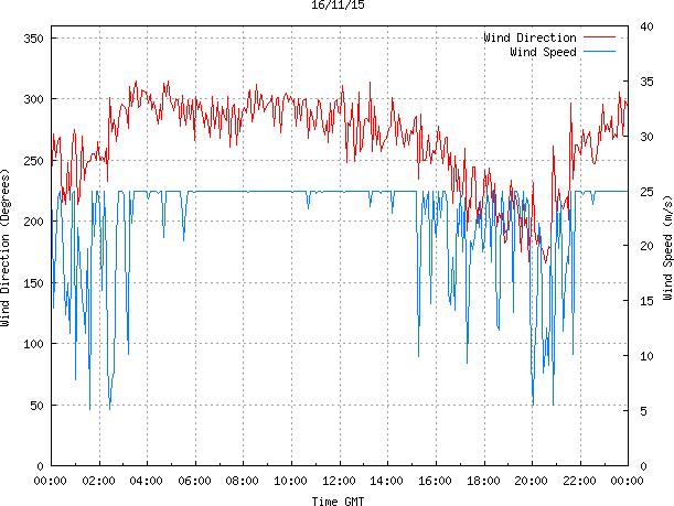 - Max Wind Speed: 25.0 ms-1 Time: 0:56:30 GMT