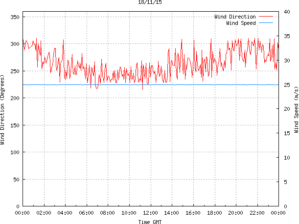 - Max Wind Speed: 24.9 ms-1 Time: 5:03:06 GMT
