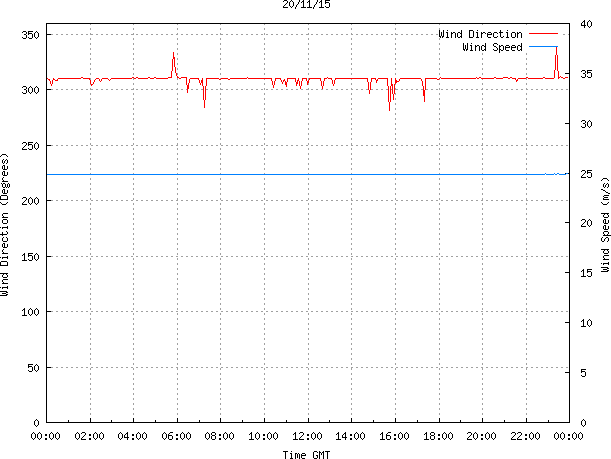 - Max Wind Speed: 24.9 ms-1 Time: 22:54:06 GMT