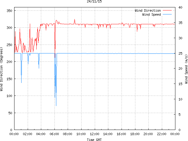 - Max Wind Speed: 25.0 ms-1 Time: 3:44:07 GMT