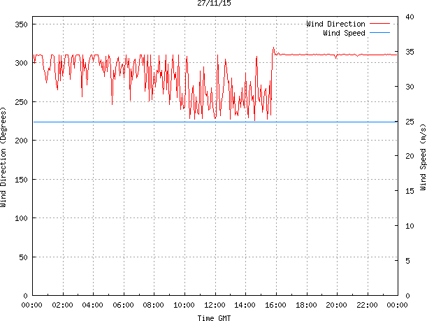 - Max Wind Speed: 24.9 ms-1 Time: 0:14:08 GMT