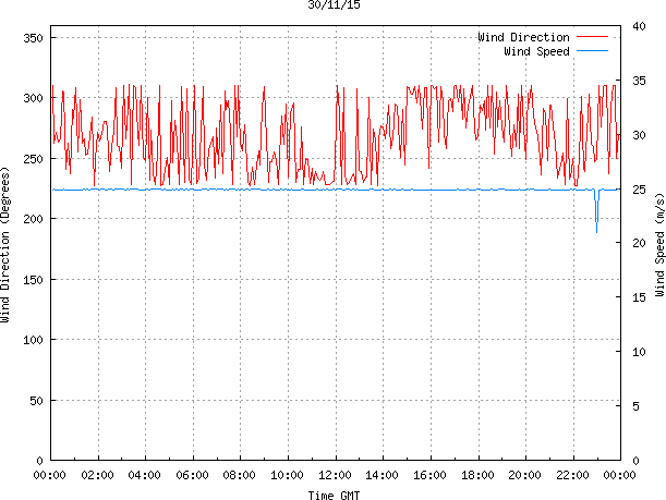 - Max Wind Speed: 24.9 ms-1 Time: 0:09:10 GMT
