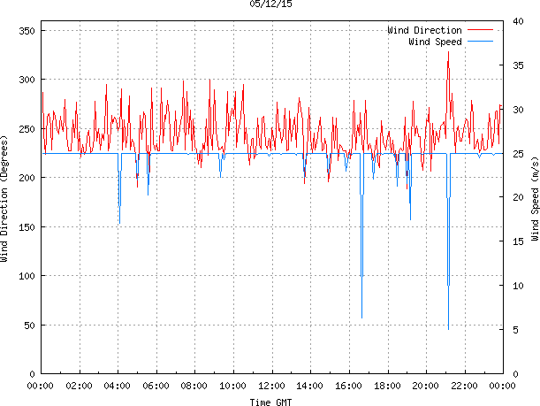 - Max Wind Speed: 24.9 ms-1 Time: 0:44:12 GMT