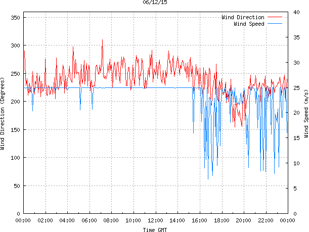 - Max Wind Speed: 24.9 ms-1 Time: 0:19:12 GMT