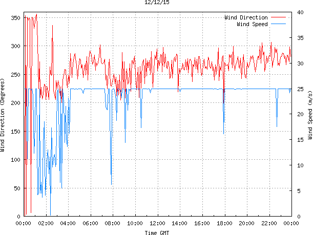 - Max Wind Speed: 24.9 ms-1 Time: 6:59:15 GMT