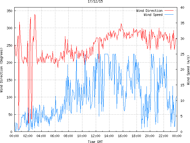 - Max Wind Speed: 24.9 ms-1 Time: 10:24:17 GMT