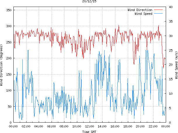- Max Wind Speed: 25.0 ms-1 Time: 14:19:18 GMT