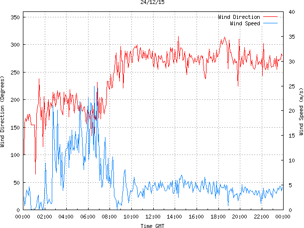 - Max Wind Speed: 25.0 ms-1 Time: 6:34:20 GMT