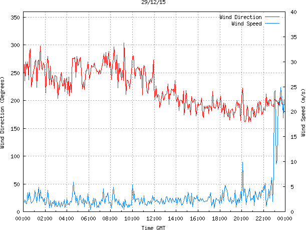 - Max Wind Speed: 24.9 ms-1 Time: 23:34:21 GMT