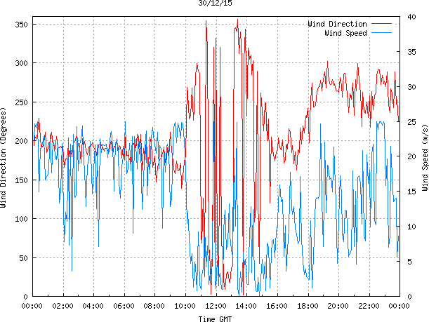 - Max Wind Speed: 25.0 ms-1 Time: 11:49:22 GMT