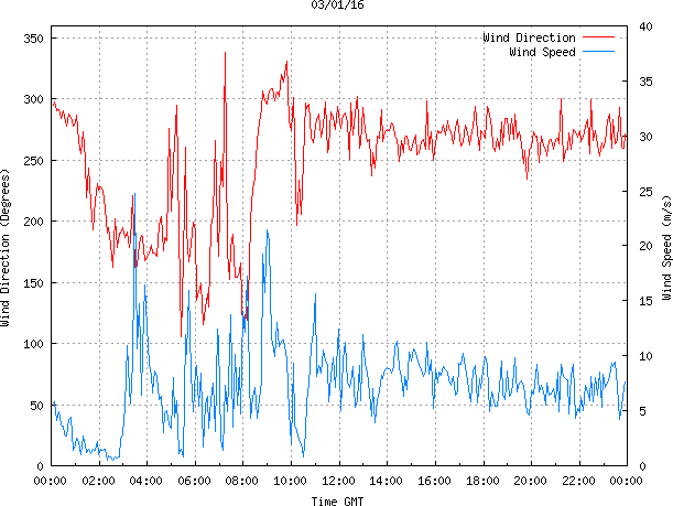 - Max Wind Speed: 24.7 ms-1 Time: 3:29:22 GMT