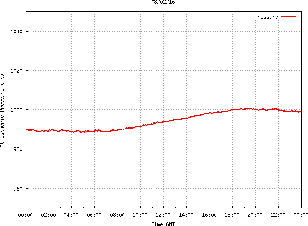 The PML meteorological station, situated on the south-west corner of the building roof, consists of a Hygroclip S3 temperature and humidity sensor housed in a radiation shield, a Mierij Meteo solid state wind sensor (MMW-005), a Chelsea instruments half-hemisphere PAR sensor, a Li-Cor pyranometer (LI-200SZ) and an Omni Instruments 6" tipping bucket raingauge (RG200). The data are logged every 5 minutes using a Pace Scientific XR5 data logger. The real-time rainfall data is likely in error - the correct values will be displayed after a time lag of approximately 24 hours. The meteorological station is sheltered from winds in the north-east and underestimates winds from this quarter. To use these data please contact Dr Tim Smyth.