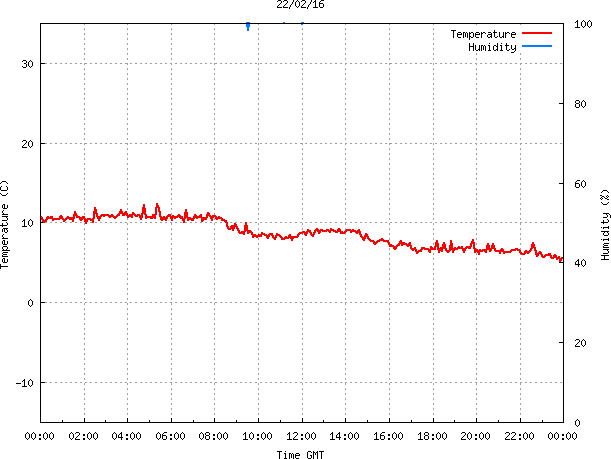 - Max Temp: 12.3 °C Time: 5:22:00 GMT