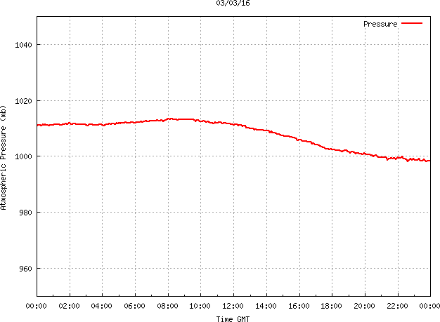 The PML meteorological station, situated on the south-west corner of the building roof, consists of a Hygroclip S3 temperature and humidity sensor housed in a radiation shield, a Mierij Meteo solid state wind sensor (MMW-005), a Chelsea instruments half-hemisphere PAR sensor, a Li-Cor pyranometer (LI-200SZ) and an Omni Instruments 6" tipping bucket raingauge (RG200). The data are logged every 5 minutes using a Pace Scientific XR5 data logger. The real-time rainfall data is likely in error - the correct values will be displayed after a time lag of approximately 24 hours. The meteorological station is sheltered from winds in the north-east and underestimates winds from this quarter. To use these data please contact Dr Tim Smyth.