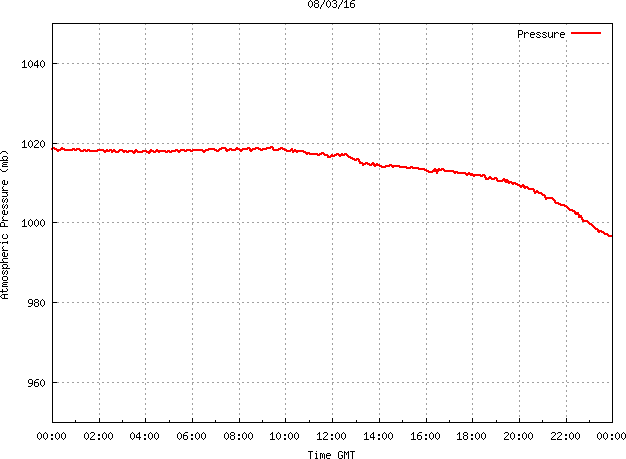 The PML meteorological station, situated on the south-west corner of the building roof, consists of a Hygroclip S3 temperature and humidity sensor housed in a radiation shield, a Mierij Meteo solid state wind sensor (MMW-005), a Chelsea instruments half-hemisphere PAR sensor, a Li-Cor pyranometer (LI-200SZ) and an Omni Instruments 6" tipping bucket raingauge (RG200). The data are logged every 5 minutes using a Pace Scientific XR5 data logger. The real-time rainfall data is likely in error - the correct values will be displayed after a time lag of approximately 24 hours. The meteorological station is sheltered from winds in the north-east and underestimates winds from this quarter. To use these data please contact Dr Tim Smyth.