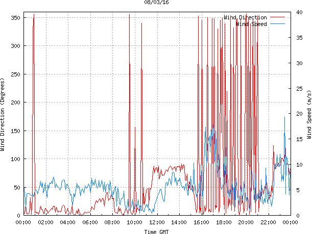 - Max Wind Speed: 19.3 ms-1 Time: 23:25:26 GMT