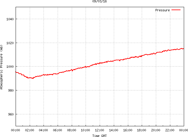 The PML meteorological station, situated on the south-west corner of the building roof, consists of a Hygroclip S3 temperature and humidity sensor housed in a radiation shield, a Mierij Meteo solid state wind sensor (MMW-005), a Chelsea instruments half-hemisphere PAR sensor, a Li-Cor pyranometer (LI-200SZ) and an Omni Instruments 6" tipping bucket raingauge (RG200). The data are logged every 5 minutes using a Pace Scientific XR5 data logger. The real-time rainfall data is likely in error - the correct values will be displayed after a time lag of approximately 24 hours. The meteorological station is sheltered from winds in the north-east and underestimates winds from this quarter. To use these data please contact Dr Tim Smyth.