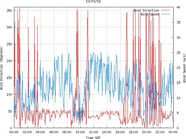 - Max Wind Speed: 25.0 ms-1 Time: 13:00:26 GMT