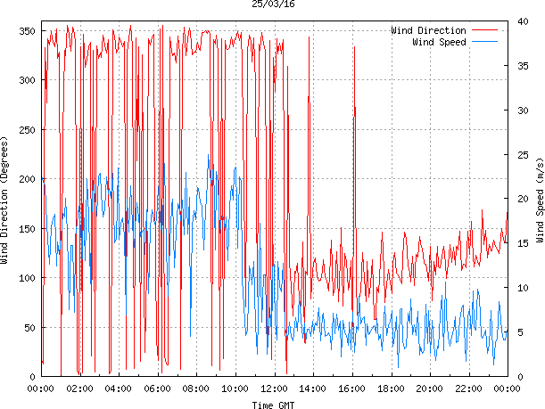 - Max Wind Speed: 25.0 ms-1 Time: 8:35:26 GMT