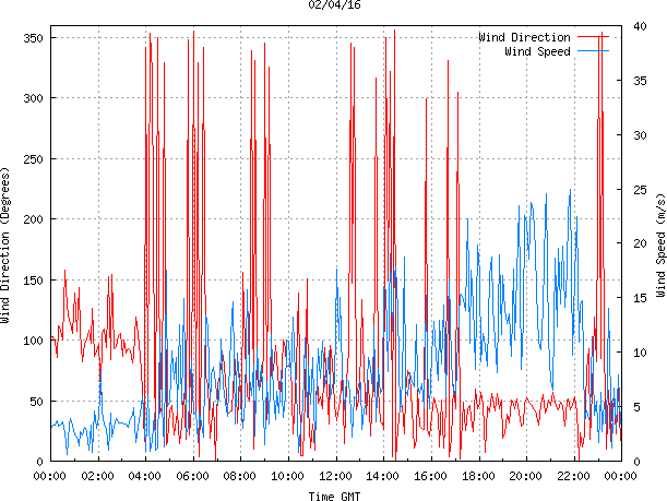 - Max Wind Speed: 24.9 ms-1 Time: 21:50:26 GMT