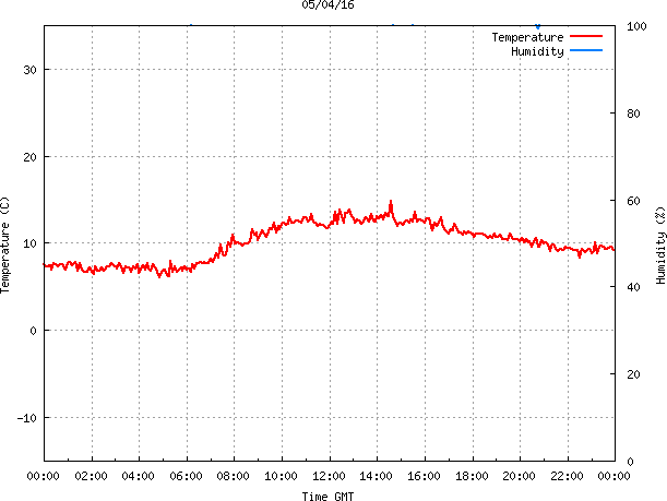 - Max Temp: 14.8 °C Time: 14:35:26 GMT
