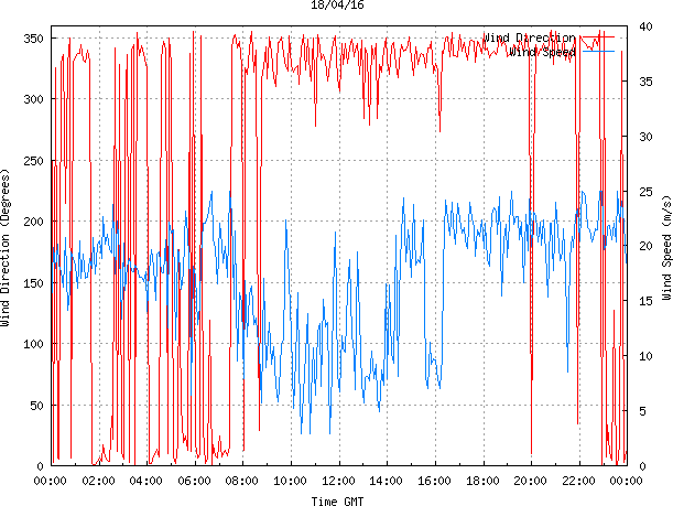 - Max Wind Speed: 25.0 ms-1 Time: 6:40:26 GMT
