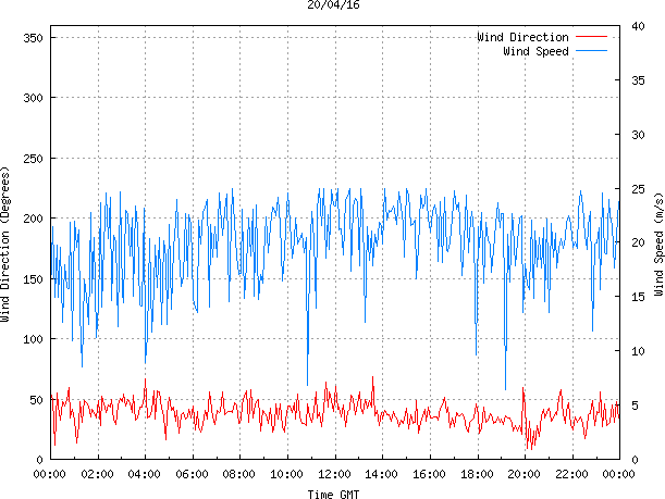 - Max Wind Speed: 25.0 ms-1 Time: 11:20:26 GMT