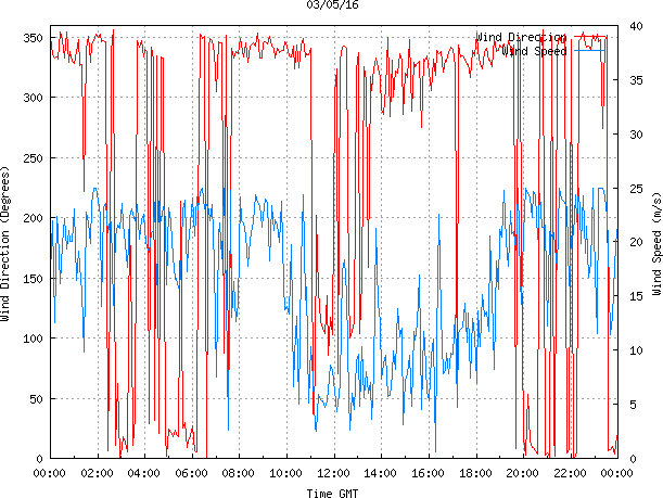 - Max Wind Speed: 24.9 ms-1 Time: 6:25:26 GMT