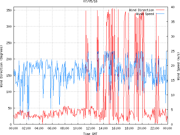 - Max Wind Speed: 24.9 ms-1 Time: 13:00:26 GMT