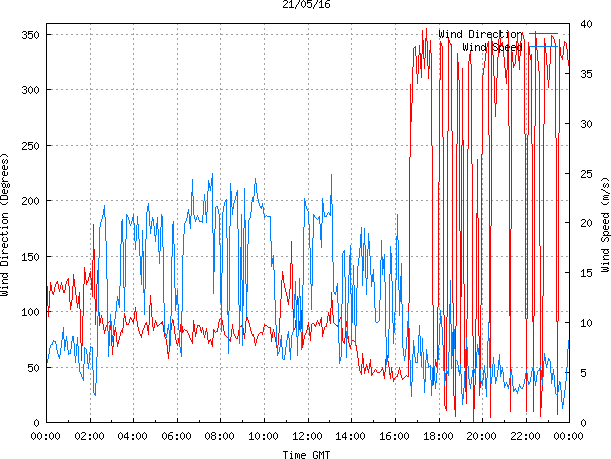 - Max Wind Speed: 24.9 ms-1 Time: 7:35:26 GMT