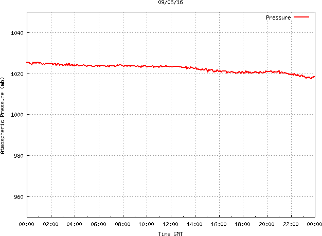 The PML meteorological station, situated on the south-west corner of the building roof, consists of a Hygroclip S3 temperature and humidity sensor housed in a radiation shield, a Mierij Meteo solid state wind sensor (MMW-005), a Chelsea instruments half-hemisphere PAR sensor, a Li-Cor pyranometer (LI-200SZ) and an Omni Instruments 6" tipping bucket raingauge (RG200). The data are logged every 5 minutes using a Pace Scientific XR5 data logger. The real-time rainfall data is likely in error - the correct values will be displayed after a time lag of approximately 24 hours. The meteorological station is sheltered from winds in the north-east and underestimates winds from this quarter. To use these data please contact Dr Tim Smyth.