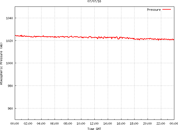 The PML meteorological station, situated on the south-west corner of the building roof, consists of a Hygroclip S3 temperature and humidity sensor housed in a radiation shield, a Mierij Meteo solid state wind sensor (MMW-005), a Chelsea instruments half-hemisphere PAR sensor, a Li-Cor pyranometer (LI-200SZ) and an Omni Instruments 6" tipping bucket raingauge (RG200). The data are logged every 5 minutes using a Pace Scientific XR5 data logger. The real-time rainfall data is likely in error - the correct values will be displayed after a time lag of approximately 24 hours. The meteorological station is sheltered from winds in the north-east and underestimates winds from this quarter. To use these data please contact Dr Tim Smyth.