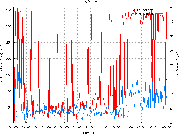 - Max Wind Speed: 21.1 ms-1 Time: 21:36:56 GMT