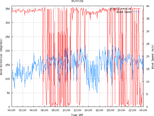 - Max Wind Speed: 24.4 ms-1 Time: 13:22:08 GMT