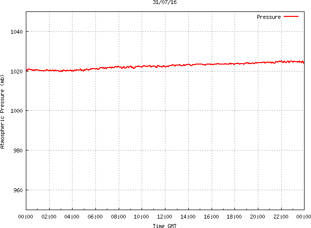 The PML meteorological station, situated on the south-west corner of the building roof, consists of a Hygroclip S3 temperature and humidity sensor housed in a radiation shield, a Mierij Meteo solid state wind sensor (MMW-005), a Chelsea instruments half-hemisphere PAR sensor, a Li-Cor pyranometer (LI-200SZ) and an Omni Instruments 6" tipping bucket raingauge (RG200). The data are logged every 5 minutes using a Pace Scientific XR5 data logger. The real-time rainfall data is likely in error - the correct values will be displayed after a time lag of approximately 24 hours. The meteorological station is sheltered from winds in the north-east and underestimates winds from this quarter. To use these data please contact Dr Tim Smyth.