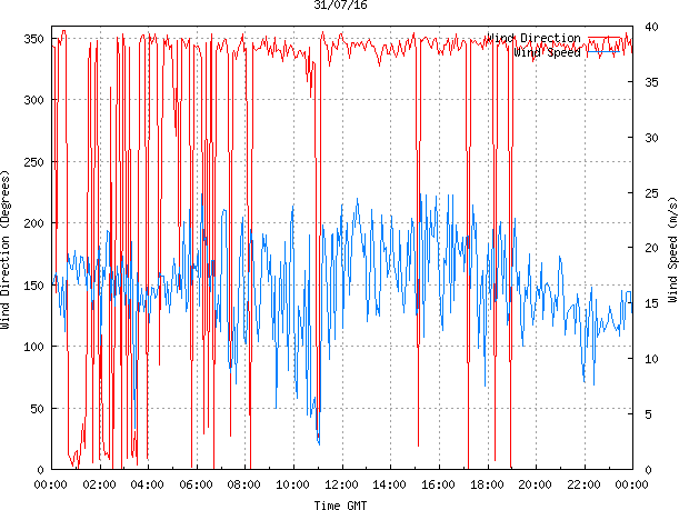 - Max Wind Speed: 24.9 ms-1 Time: 6:12:09 GMT