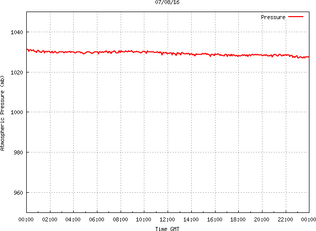 The PML meteorological station, situated on the south-west corner of the building roof, consists of a Hygroclip S3 temperature and humidity sensor housed in a radiation shield, a Mierij Meteo solid state wind sensor (MMW-005), a Chelsea instruments half-hemisphere PAR sensor, a Li-Cor pyranometer (LI-200SZ) and an Omni Instruments 6" tipping bucket raingauge (RG200). The data are logged every 5 minutes using a Pace Scientific XR5 data logger. The real-time rainfall data is likely in error - the correct values will be displayed after a time lag of approximately 24 hours. The meteorological station is sheltered from winds in the north-east and underestimates winds from this quarter. To use these data please contact Dr Tim Smyth.