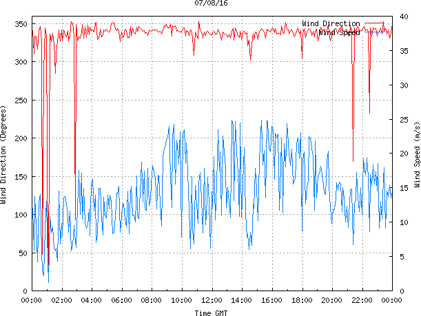 - Max Wind Speed: 24.9 ms-1 Time: 13:17:12 GMT